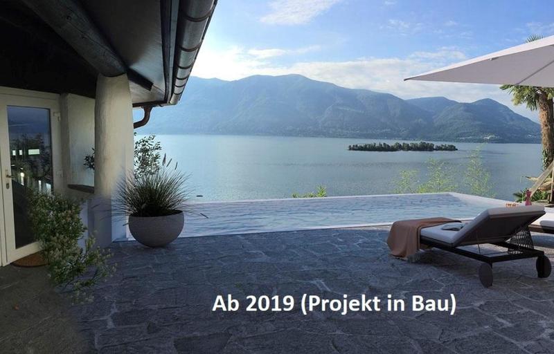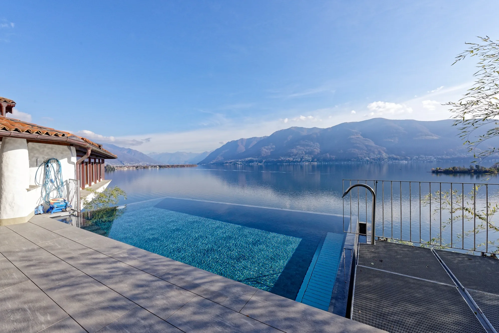 Ihr Ferienhaus in Ronco sopra Ascona mit geheiztem Infinity-Pool, 180°-Panoramablick auf den Lago Maggiore und grosszügiger Lounge-Terrasse – Ferien im Tessin in seiner schönsten Form.