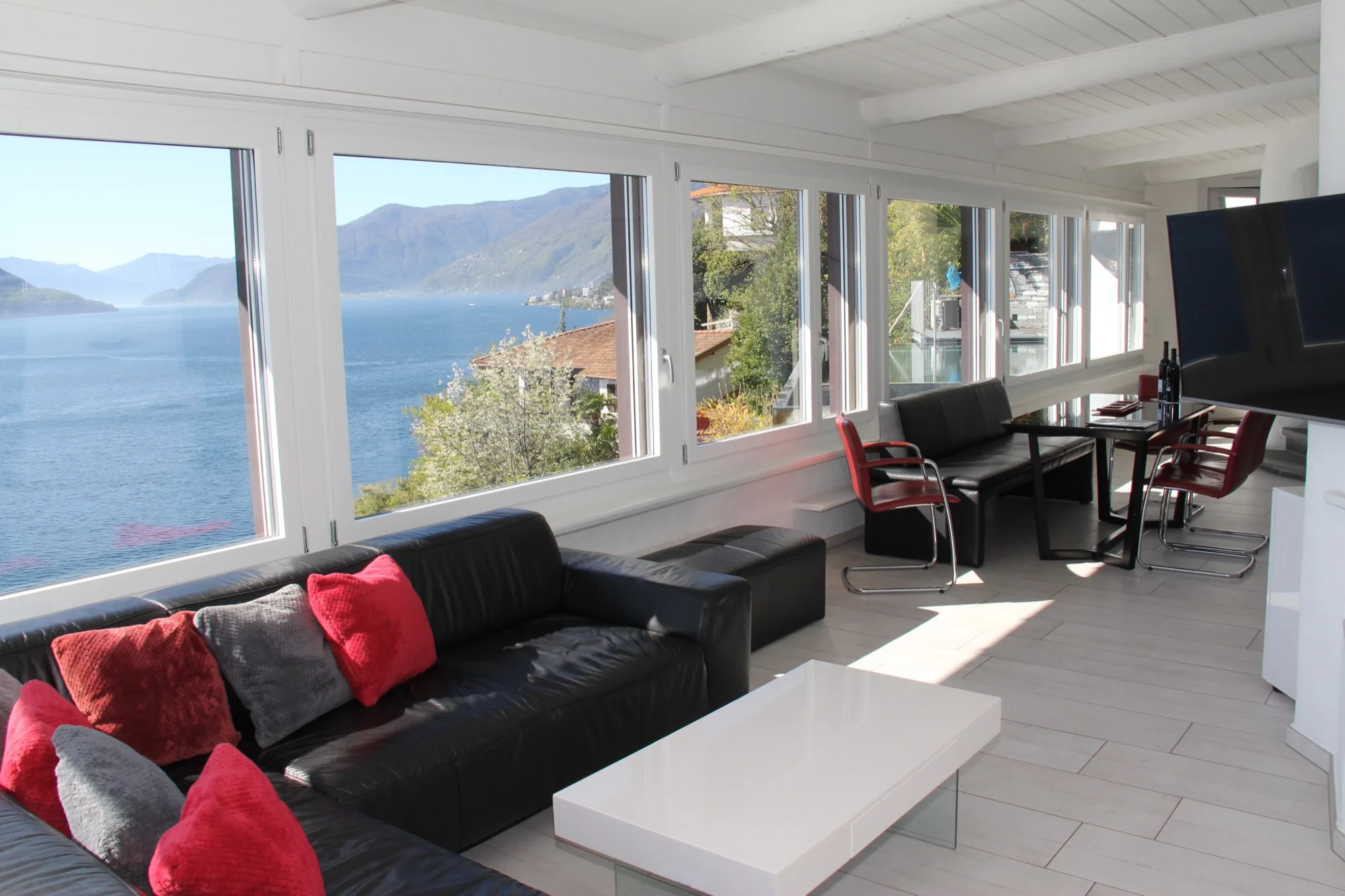 Willkommen im Ferienhaus Rondine – Ihrem privaten Rückzugsort hoch über dem Lago Maggiore. Das neu renovierte 4.5-Zimmer-Ferienhaus liegt in Ronco sopra Ascona (Gemeinde Porto Ronco), 80 Meter über dem See, und bietet einen atemberaubenden 180°-Panoramablick auf Lago Maggiore, Brissago-Inseln und Ascona.