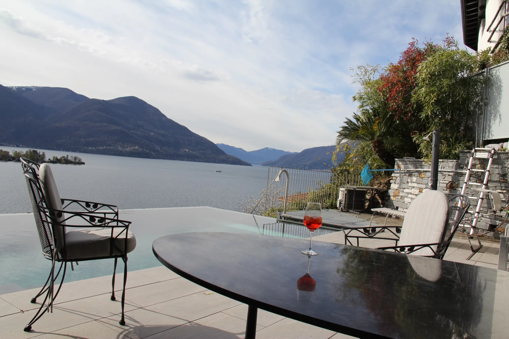 Ihr Ferienhaus in Ronco sopra Ascona mit geheiztem Infinity-Pool, 180°-Panoramablick auf den Lago Maggiore und grosszügiger Lounge-Terrasse – Ferien im Tessin in seiner schönsten Form.